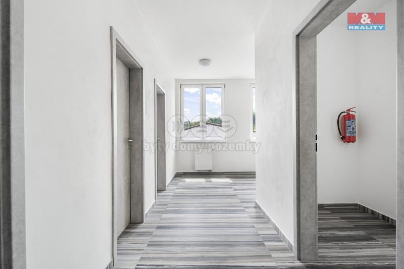 Nabízíme k pronájmu reprezentativní novostavbu zateplené haly o výměře 288 m² s přilehlými kancelářskými a provozními prostory o velikosti 182 m². Halu lze využít pro výrobu, či skladování. Objekt disponuje recepcí, zasedací místností, několika kancelářemi, kuchyňkami, šatnami, sociálním zázemím. Hala má dvoje sekční výsuvná vrata. Topení je řešeno tepelným čerpadlem s možností dálkové regulace. Součástí je kamerový systém, alarm s čidly na oknech a dveřích a možnost napojení na PCO. K dispozici je 8 parkovacích míst na vlastním pozemku, venkovní kuřárna a příjezd i pro nákladní dopravu. Možnost úprav dle požadavků nájemce. Prostory jsou k dispozici ihned.