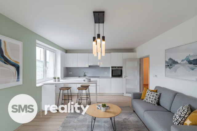 Byt samotný je situován ve 3. nadzemním podlaží. Prostorný obývací pokoj s místem na kuchyňský kout s ostrůvkem, orientace na jiho-západ nabízí dostatek světla a příjemnou atmosféru. Na obývací místnost navazuje prostorná předsíň, která nabízí dostatek prostoru pro úložné prostory. Byt nabízí velkorysou koupelnu s vanou a sprchovým koutem a odděleným WC. Dva pokoje o podlahové ploše 20 a 13m2 Vám poskytnou dostatečný prostor pro odpočinek. Podlaha je pokryta vinylem a vytápění je zajištěno elektrokotlem. K bytu lze zakoupit parkovací místo před domem za 200 000Kč a sklepní kóje za 160 000Kč.