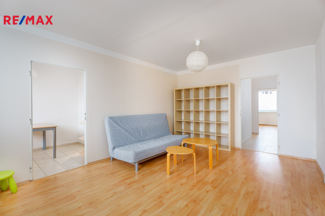 Byt je částečně vybaven – kuchyňská linka se spotřebiči, kuchyňský stůl, sedačka, konferenční stolky, policové skřínky, PC stolek, komoda.