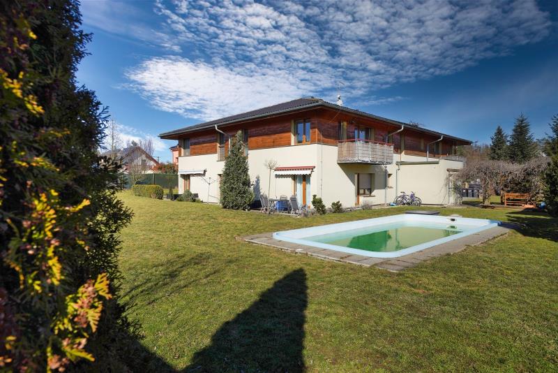 Byt působí čistě, útulně a nabízí dostatek úložných i obytných prostor. Terasa navazující na zahradu poskytuje příjemné soukromí a skvělé místo pro posezení, relax, hraní dětí nebo letní grilování. Obyvatelé domu mohou využívat i venkovní bazén situovaný přímo na zahradě.