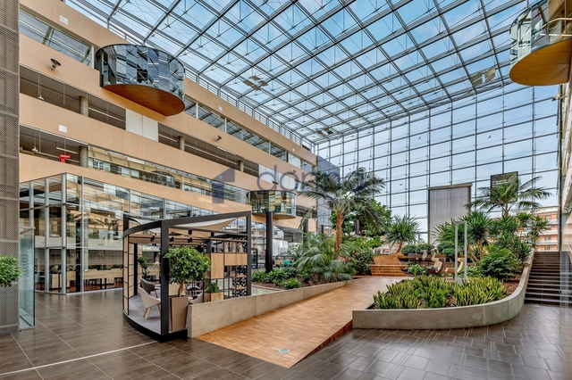 Prosklená budova ve tvaru písmene U s pěti nadzemními a dvěma podzemními podlažími. V budově nyní nabízíme k pronájmu kancelářské jednotky v 5.NP o rozloze od 250 m2 do 1365 m2. Díky efektivnímu půdorysu můžete využít stávající dispozice prostor, nebo si je flexibilně přizpůsobit svým představám. Aktuálně nabízené kanceláře jsou k dispozici ve velmi vysokém standardu včetně zdvojených podlah, LED osvětlení. Dominantou celého prostoru je atrium s bohatou zelení a vodním prvkem. K pracovnímu komfortu přispívá také jídelna přístupná všem nájemcům a kolárna.